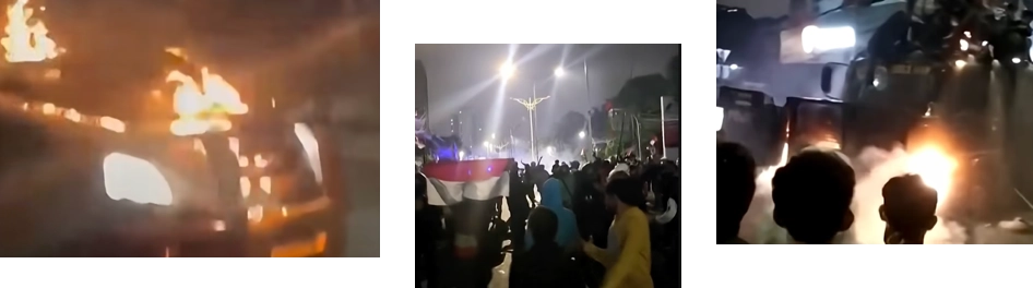 - In a nighttime video on 30 August 2025, The building facade of the East Jakarta Metro Police Station appears to have been set on fire. Fireworks are shot into the air, lighting up the night sky.