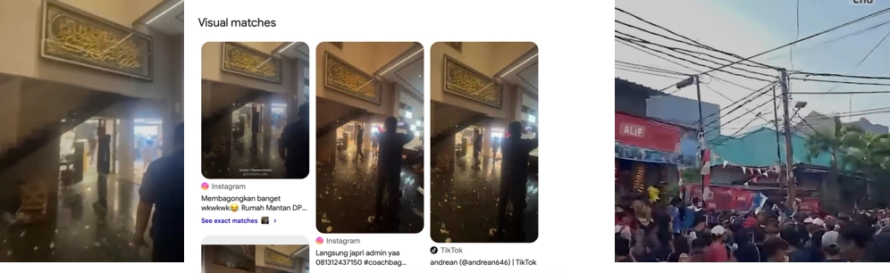 The house of Ahmad Sahroni, Indonesian Member of Parliament who called protesters “stupid” for wanting to dissolve parliament, in Tanjung Priok, North Jakarta, was looted by a mob of protesters during the day on 30 August 2025. Videos are widely shared on social media. One good entry point to view additional content from various angles is by taking a snapshot from inside his house, showing a decorative ornament. Alternatively, a good snap shot can be taken of the crowd outside. Among other, video imagery shows, a sports car being vandalised, a large crowd inside a ransacked home, a piano being rolled out onto the street which looks remarkably similar to the piano that appeared to be inside the house in a separate video. A safe appeared to have been looted with cash being distributed amongst the crowd.